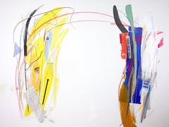 Dyanna's process starts well before a blank canvas. She collects pieces from her surroundings to use as material and to keep her attuned to her environment. Dyanna utilizes the aesthetic value in these everyday goods. We tune out thousands of objects around us because we don't have a current need or they don't seem important. Sun bleached plastic, the inside of an envelope, these materials are the foundation for Dyanna's process. She curates her pieces in an intuitive way, like a puzzle. Through Dyanna’s creative use of disposable goods, she urges the viewer to change the traditional context of “trash” in their minds. She likes to trick the viewer's eye by bringing into question the medium used to create.
