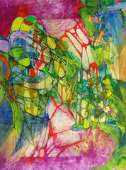 Ink, gouache and wood stain on wood panel with resin (6 panels)