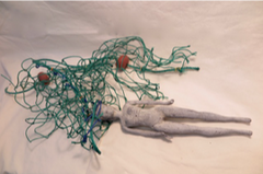 Glass, glass beads, astro-turf, wasps