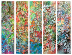 Ink, gouache and wood stain on wood panel with resin (6 panels)