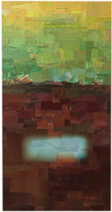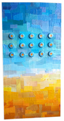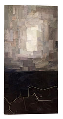 Mixed media paper collage on wood