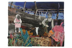 Rag paper, matte medium, acrylic paint on canvas